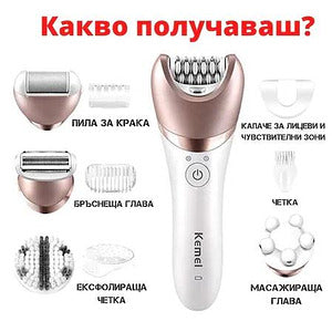 Дамски комплект за красота 5в1 Епилатор ,Четка за лице, Масажор, Пила за крака,Водоустойчив