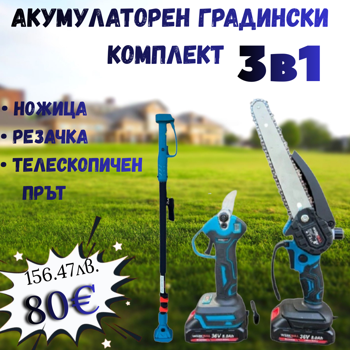 Променете начина, по който се грижите за своята градина с иновативния акумулаторен комплект 3в1 – съвършеното решение за рязане, подрязване и оформяне!