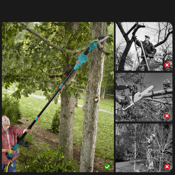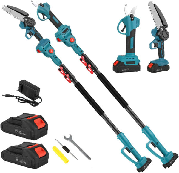 Комплектът съчетава в себе си три незаменими инструмента: резачка с 8-инчов водач, мощна градинска ножица и регулируем телескопичен прът с дължина до 2 метра – всичко необходимо, за да работите лесно, безопасно и без усилия.