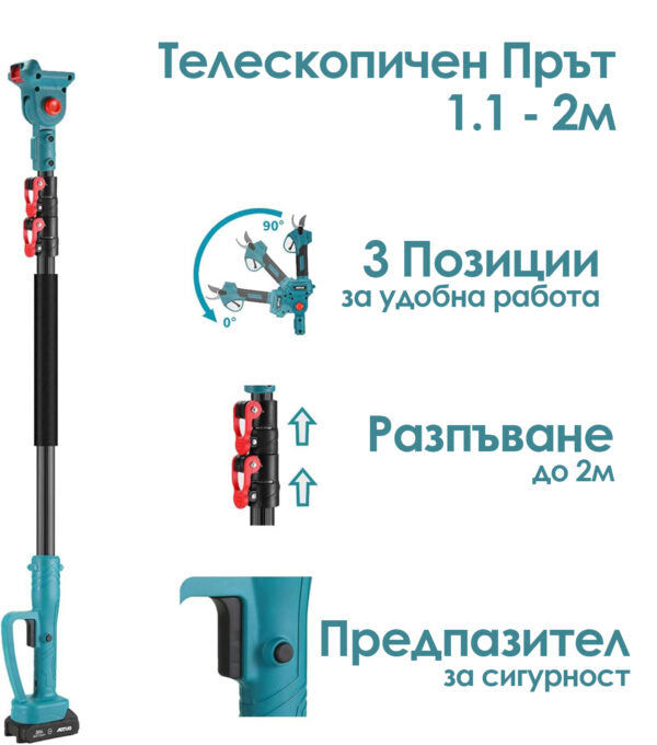 Благодарение на регулируемия прът до 2 метра, с лекота ще достигате високи клони, без да се налага използването на стълби или допълнителни средства за повдигане. По-бързо, по-безопасно и много по-удобно!