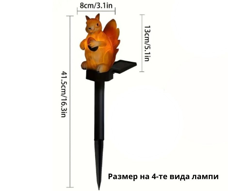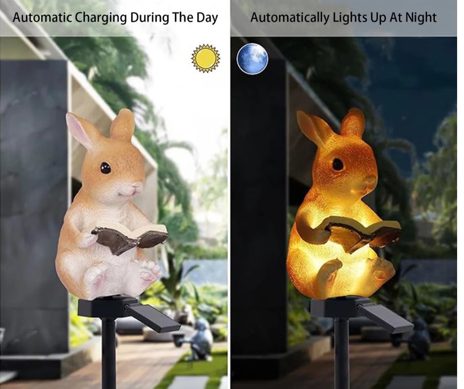 - Пакетът съдържа: 4 слънчеви лампи с модели на животни (заек с книга, жаба, заек, бухал)